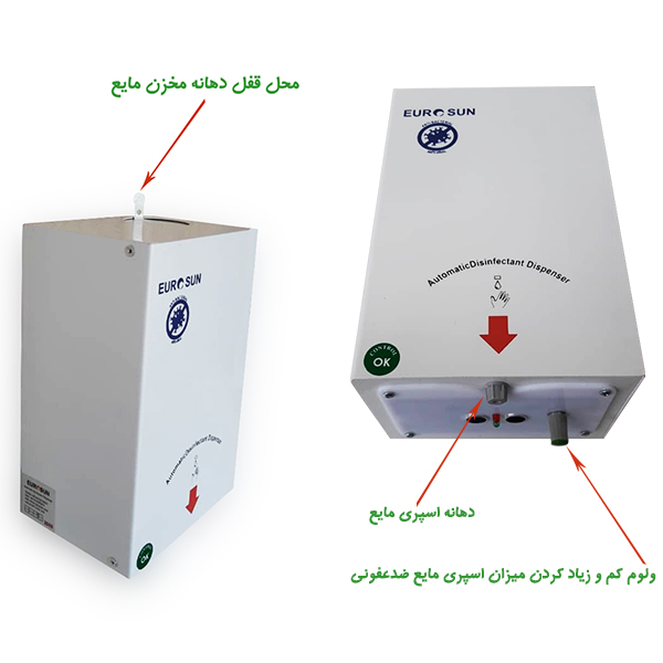 دستگاههای ضدعفونی کننده اتوماتیک دست یوروسان، با استفاده از تکنولوژی اولترا ساند کار می کند. و هنگامی که دست در زیر آن قرار گیرد، مایع ضدعفونی کننده را به شکل اسپری بر روی سطح دست می پاشد.دارای ولوم میزان اسپری مایع ضد عفونی کننده می پاشد. همچنین در بالای درب پر کردن مایع، دارای محل قفل، برای جلوگیری از دسترسی افراد ثالث(خرابکاری و دست درازی ) می باشد. همچنین بشکل استند و یا دیواری ارائه می گردد.