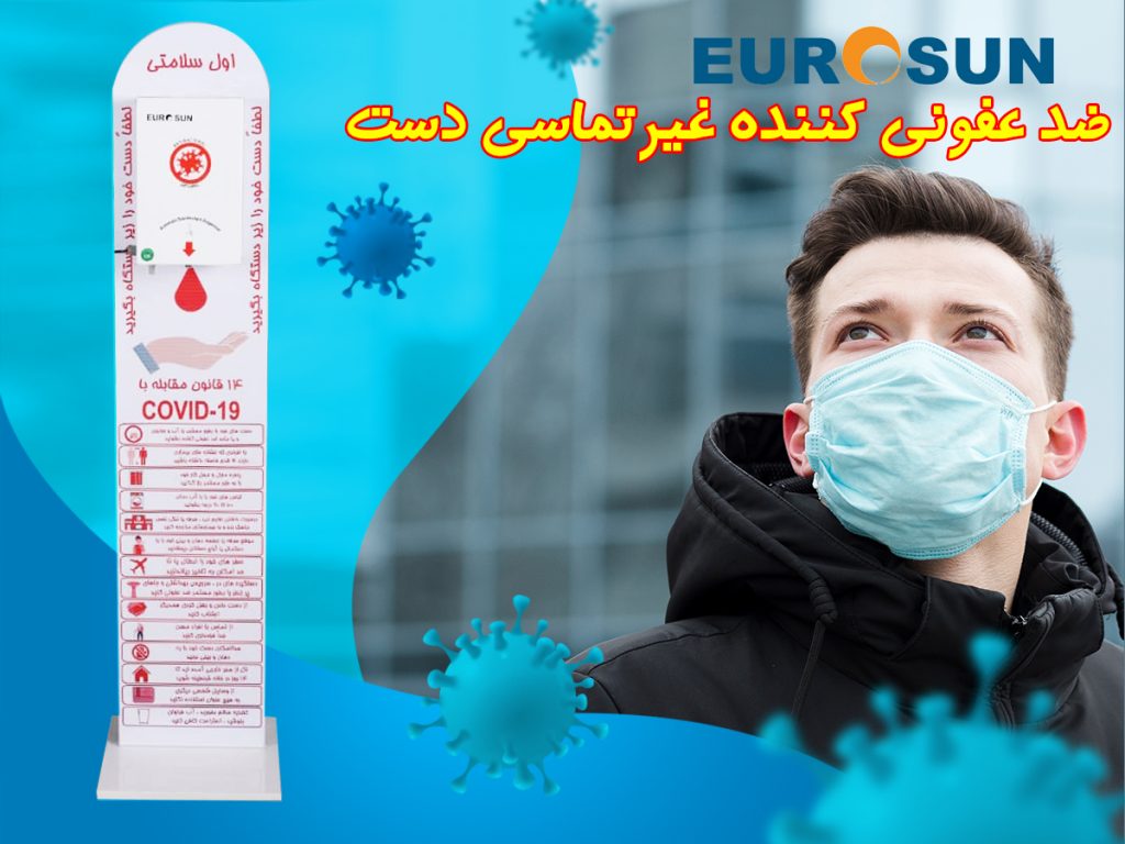 دستگاه ضدعفونی کننده اتوماتیک دست یوروسان، دارای تکنولوژی غیر تماسی ریزش مایع، با طراحی صنعتی و بدنه فلزی، دارای مخزن با گنجایش 1500 سی سی قابل استفاده در تمامی محل های مورد نیاز برای ضدعفونی کردن دست و مقابله با ویروس کرونا، ساختمان های مسکونی، درمانگاه ها، مغازه و فروشگاه ها، بیمارستان ها، مدارس و کلاسهای آموزشی و …